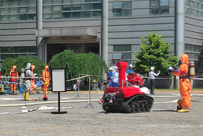 演練場景模擬北普公司院內(nèi)兩名恐怖分子劫持一輛滿載液氧槽罐車沖撞氫氣瓶組存放區(qū),造成液氧槽罐車車頭著火,部分高壓氫氣瓶泄漏、受熱存在潛在爆炸風(fēng)險?,F(xiàn)場兩名人員受傷,駕駛室內(nèi)恐怖分子被困,現(xiàn)場情況不明。
