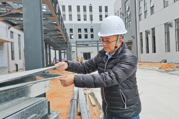 土建施工啟動以來,王磊幾乎每天都會到建設(shè)現(xiàn)場協(xié)調(diào)進(jìn)度、現(xiàn)場勘察、組織聯(lián)絡(luò)等。廣東夏季炎熱,項(xiàng)目現(xiàn)場的臨時辦公場所是由集裝箱改建,內(nèi)部悶熱難耐、條件艱苦,王磊毫無怨言、心無旁騖,一心撲在建設(shè)工作上,積極圍繞工程建設(shè)進(jìn)度、工程質(zhì)量、施工安全等方面開展現(xiàn)場督導(dǎo)檢查,對發(fā)現(xiàn)問題嚴(yán)抓整改到位。