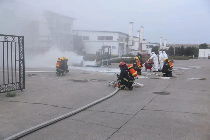 為進(jìn)一步筑牢安全生產(chǎn)防線,壓緊壓實(shí)安全生產(chǎn)責(zé)任, 6月底,華騰化工組織開(kāi)展了2024年危險(xiǎn)化學(xué)品火災(zāi)事故應(yīng)急演練。此次演練模擬場(chǎng)景為危險(xiǎn)化學(xué)品庫(kù)房入庫(kù)作業(yè)時(shí)發(fā)生丙酮泄露著火,開(kāi)展了火災(zāi)上報(bào)與先期處置、人員疏散逃生、微型消防站和消防救援隊(duì)滅火等環(huán)節(jié)的演練科目。