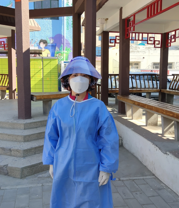 當(dāng)時(shí),社區(qū)的工作人員都去支援密接區(qū)域了,短時(shí)間內(nèi)我所在的小區(qū)出現(xiàn)了管控人員人手不夠的緊急情況,沒有多想,我全副武裝,上崗!
