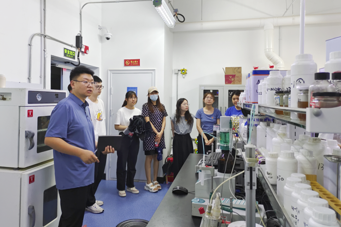 隨后,在總工程師崔正的帶領(lǐng)下,師生參觀了華騰新材辦公場所、產(chǎn)品陳列、實驗室等,促進了學(xué)生們對理論知識與生產(chǎn)應(yīng)用相結(jié)合的感知,也對實驗室安全管理有了更加直觀的認識。