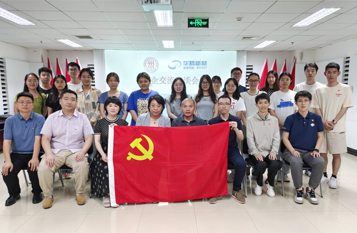 在深入開展學(xué)習貫徹習近平新時代中國特色社會主義思想主題教育之際,6月19日,中國人民大學(xué)理學(xué)院黨委書記馮詩松帶領(lǐng)老師學(xué)生代表一行14人赴華騰新材公司交流調(diào)研,華騰新材公司黨總支書記齊小麗、總工程師崔正、董事會秘書金東旭及相關(guān)部室負責人接待馮詩松一行。