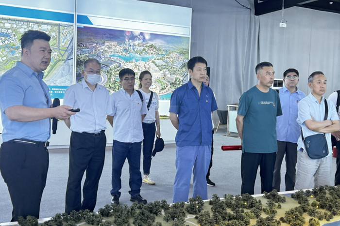 在展廳內(nèi),全體黨員干部通過觀看沙盤、展板和宣傳片,詳細(xì)了解了北京城市副中心建設(shè)的總體規(guī)劃理念、戰(zhàn)略定位、發(fā)展目標(biāo)、空間布局、功能定位和城市特色等綜合規(guī)劃情況,以及北京城市副中心未來在城建、交通、文化、生態(tài)、旅游等方面的周密規(guī)劃。