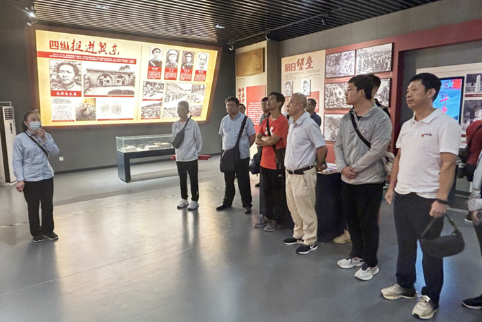在參觀中,一張張記錄著抗?fàn)幫馊璧恼掌?、一件件反映民族抗?zhàn)的歷史實(shí)物,訴說著魚子山人民抗戰(zhàn)的艱辛與決絕。大家被他們大無畏的犧牲精神深深地感染著,在紀(jì)念碑前,大家激動地重溫入黨誓詞。