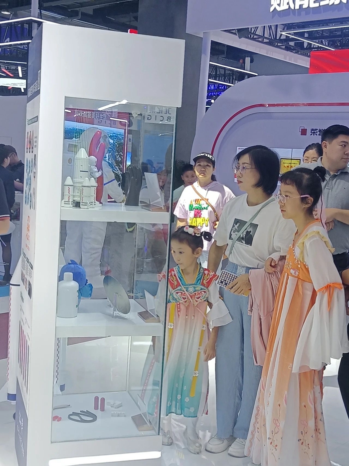 在展位現(xiàn)場,有的觀眾對于展示的儲氫瓶內膽專用材料高度關注,并有強烈的合作意愿,有的觀眾對展示的軟包裝膠黏劑主動提出市場開發(fā)合作意向,還有很多觀眾帶著孩子逐一學習觀摩展出的化工領域創(chuàng)新產品。可以說,化工集團的主題展位既是商業(yè)合作的溝通交流平臺,又是了解化工、學習知識的科普教育平臺。