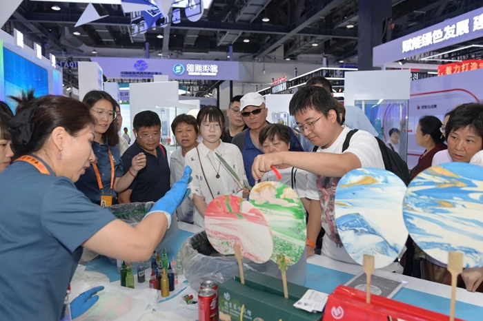 本屆展會,北京化工集團還創(chuàng)新性的將集團部分產品與文化創(chuàng)意緊密融合,設立“丙烯酸酯聚合物乳液”漆扇制作、“橡塑制品+502膠”創(chuàng)意包裝產品線上線下售賣等環(huán)節(jié),吸引大量觀眾前來打卡并紛紛點贊。