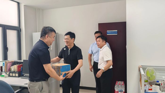 7月9日下午,北京化工集團(tuán)黨委書記、董事長陳宇,黨委副書記吳瑞峰,黨委常委、副總經(jīng)理韓寶海,黨委常委、紀(jì)委書記常延輝來到華騰橡塑,進(jìn)車間、到班組,親手將一份份清涼飲品送到一線職工手中。慰問過程中,陳宇詳細(xì)了解一線職工工作生活情況,對(duì)大家冒著高溫酷暑,以高度的責(zé)任感和飽滿的工作熱情堅(jiān)守一線給予充分肯定。陳宇叮囑大家既要高質(zhì)量完成好本職工作,又要時(shí)刻關(guān)注身心健康,集團(tuán)各級(jí)黨組織和工會(huì)組織要從各方面確保防暑降溫工作落到實(shí)處,保證干部職工健康安全。