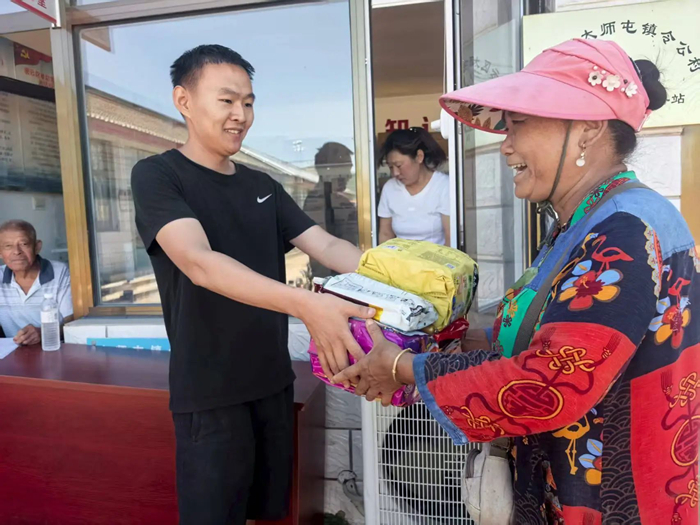 7月30日上午,李東又馬不停蹄地組織人員將北京化工集團馳援的物資分發(fā)到村民手中。