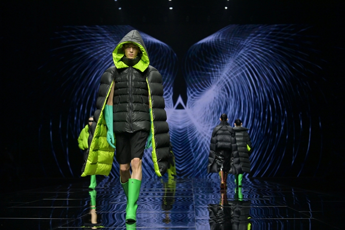 整個(gè)秀場(chǎng),靚麗前衛(wèi)的膠靴或踏于足下,或成為時(shí)尚新品挎于體側(cè),伴著強(qiáng)勁的樂(lè)曲,綻放出化工科技在時(shí)尚前沿的另類(lèi)美學(xué)。