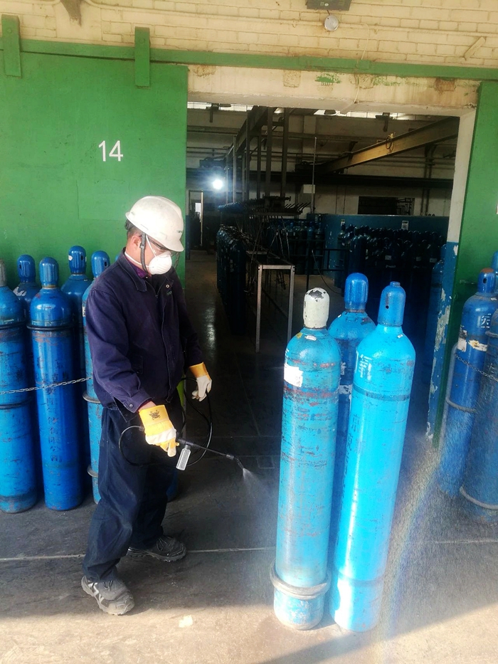 疫情大大增加了配送工作難度,配送員要全副武裝,穿上防護(hù)服、戴上防護(hù)鏡和防護(hù)口罩。每次配送前后,都要分別在公司和醫(yī)院對氧氣鋼瓶和車輛進(jìn)行消毒處理,以確保醫(yī)用氧在生產(chǎn)、運(yùn)輸過程中始終處于絕對安全狀態(tài)。