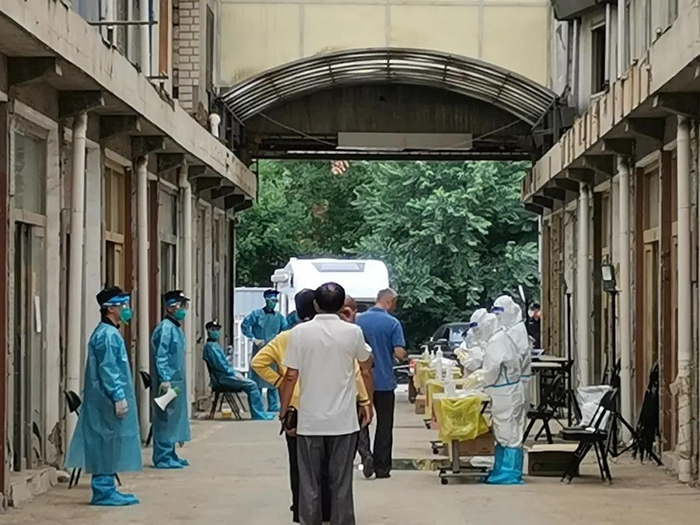 6月22日,豐臺區(qū)疾控中心、某街道辦事處和某社區(qū)負(fù)責(zé)人專程來到環(huán)球橡膠廠進(jìn)行實(shí)地考察,最終確定環(huán)球橡膠廠廠區(qū)作為某地區(qū)核酸檢測指定場所,并于6月23日下午進(jìn)場布置。