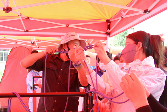 活動(dòng)現(xiàn)場(chǎng),專家講師在高溫天氣下,為公司職工詳細(xì)講解了心肺復(fù)蘇要領(lǐng)和AED的使用方法,開(kāi)展了自救結(jié)繩演練、模擬滅火體驗(yàn)、模擬通道煙霧逃生等應(yīng)急活動(dòng)。