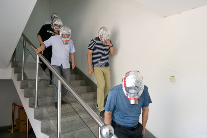 本次演練活動(dòng)以“人人講安全,個(gè)個(gè)會(huì)應(yīng)急”為主題,研究制定演習(xí)方案,確保應(yīng)急演習(xí)符合實(shí)際要求,演練過程中,啟動(dòng)了大廈新成立的微型消防站,隊(duì)員們穿戴整齊,動(dòng)作專業(yè)標(biāo)準(zhǔn),完成了演練設(shè)定的各項(xiàng)規(guī)定動(dòng)作,在疏散過程中,總部為干部職工配備了過濾式消防自救呼吸器供大家體驗(yàn)。