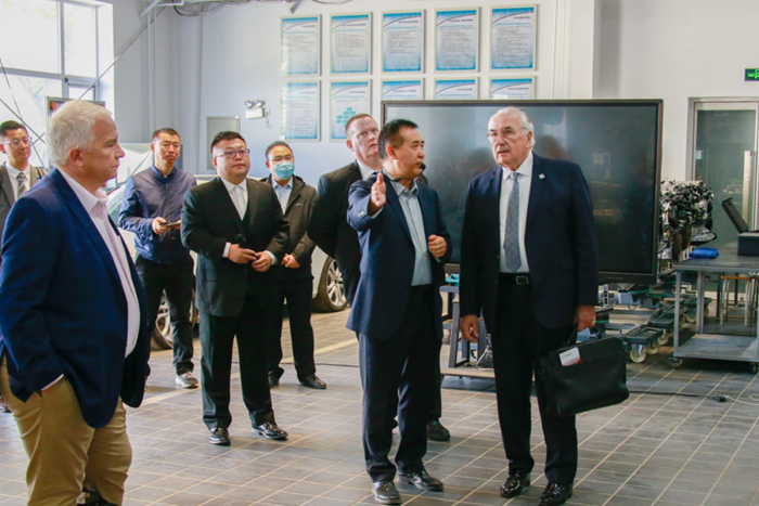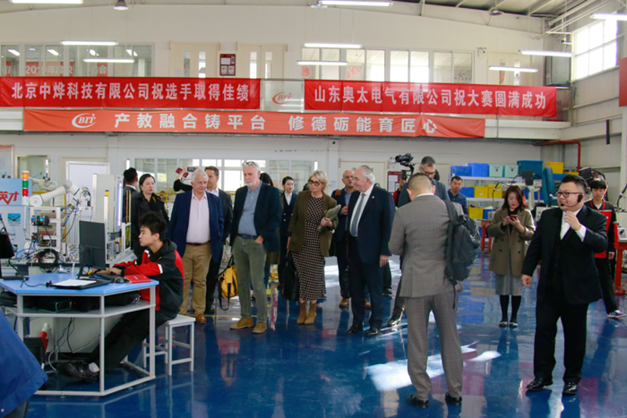 按照精心設(shè)計(jì)的接待路線,英國職業(yè)技能訪問團(tuán)一行先后來到學(xué)院數(shù)控車間、數(shù)控世賽基地、文物修復(fù)實(shí)訓(xùn)室等多個教學(xué)場所參觀。